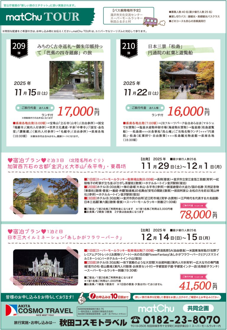 | 登録番号 | 秋田県知事登録旅行業 第2-75号 |